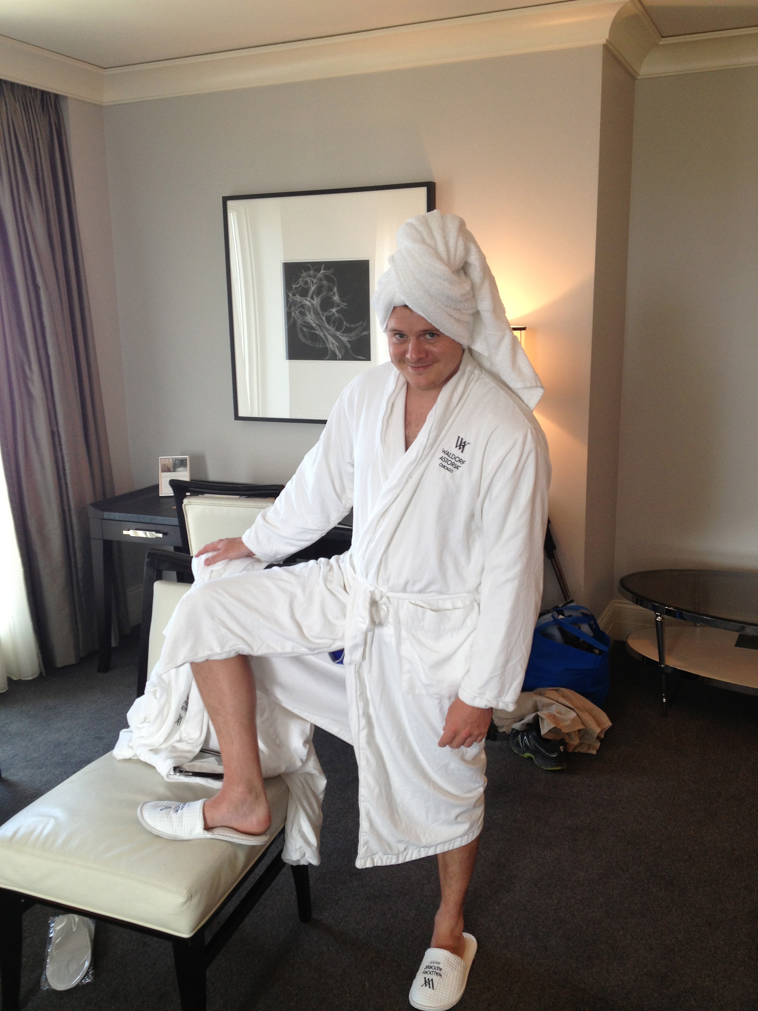When we were planning this trip, there were a few things that I never thought would happen: I never expected to go to a baseball game, I never expected to stay in a suite at a five-star hotel, and I certainly never expected to spend half an hour in a steam room, chatting to Hollywood highest paid actor.